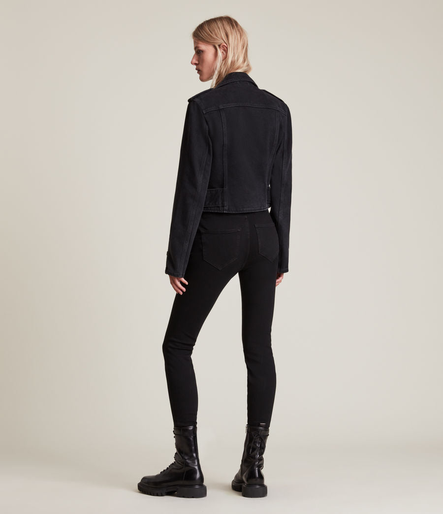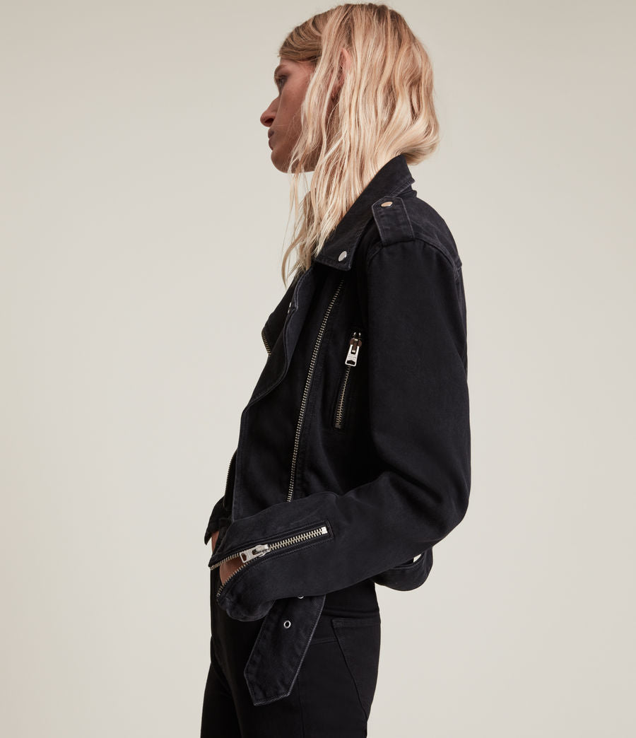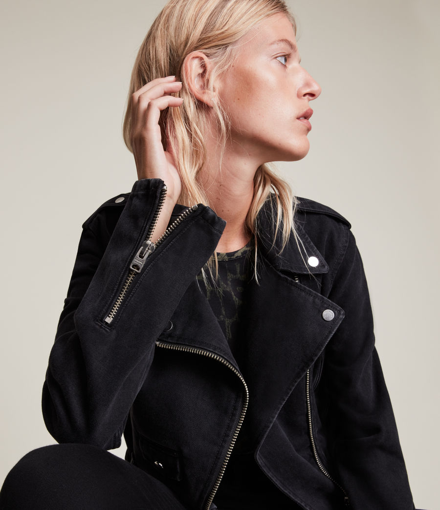 Your favourite Balfern Biker Jacket, but denim. This one's cropped too. Crafted from washed black denim, with our signature metal hardware to complement.