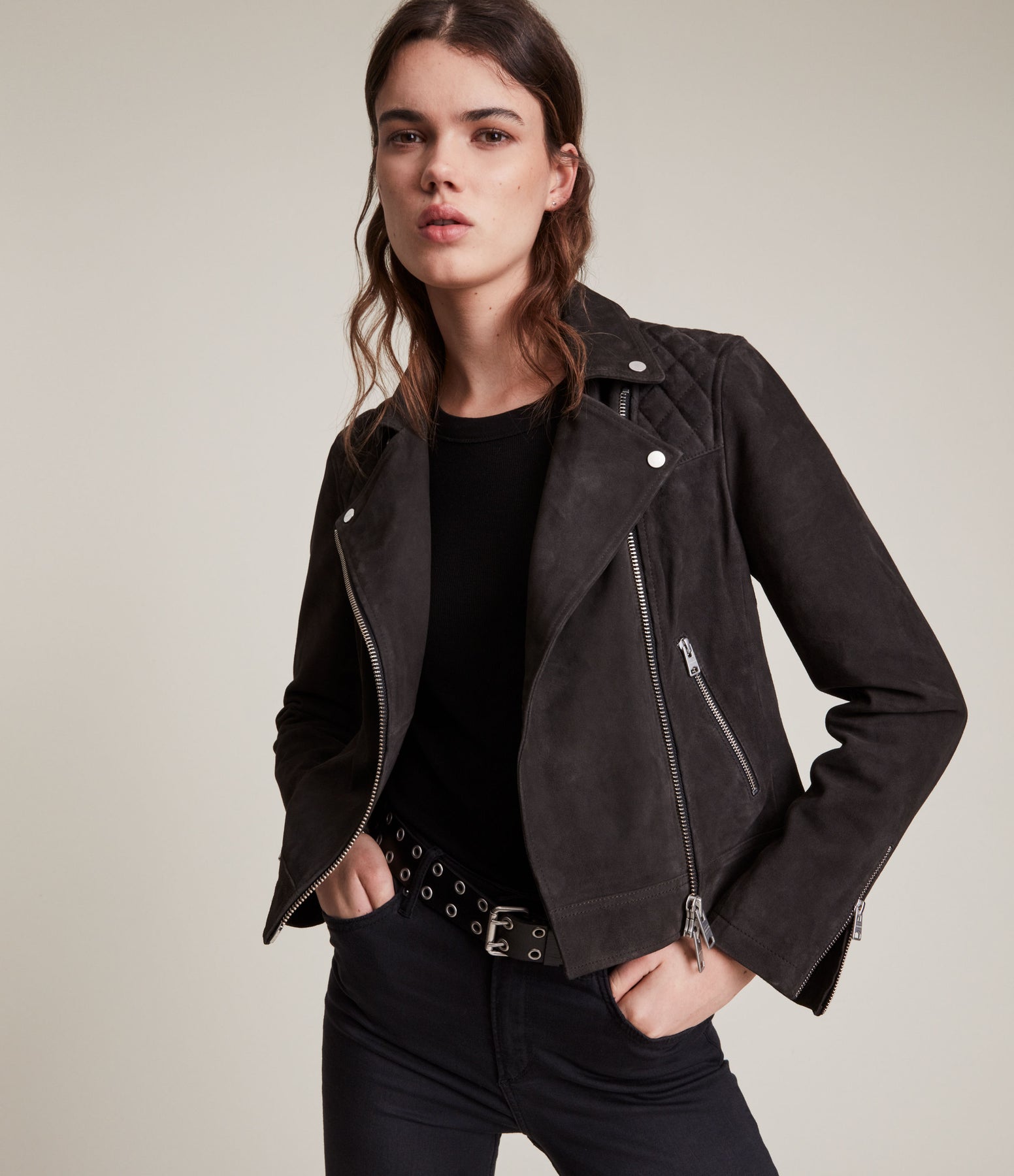 AllSaints Women's Caden Suede Moto Jacket
