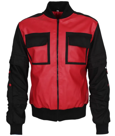 - Men's Red and Black Bomber Synthetic Leather Biker Jacket For Men