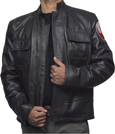 - Poe Dameron Star Wars Finn Mens Biker Black Leather Jacket