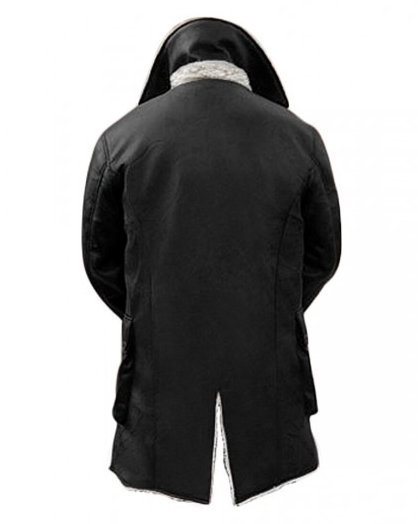 Mens Winter Black Leather Shearling Coat - 3/4 Length
